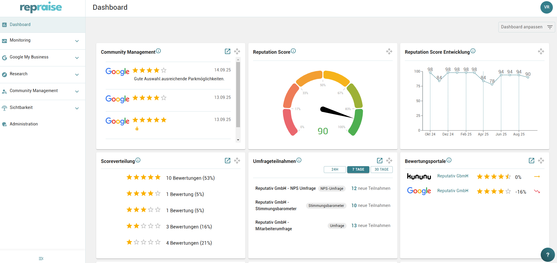 Nach Ihrer Anmeldung sehen Sie Ihr persönliches Dashboard.