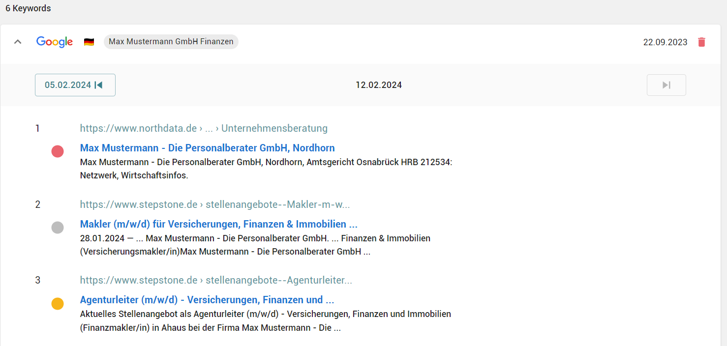 Folgende Ampeln werden nach Analyse der Suchergebnisse vergeben: