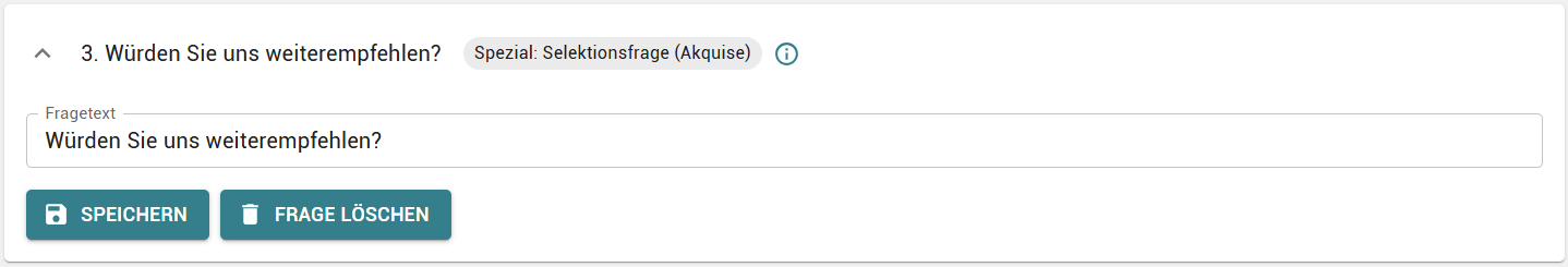 - Die Feedbackfrage muss im Fragebogen nach der Selektionsfrage platziert werden: