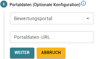 Möchten Sie, dass die Teilnehmer am Ende der Umfrage eine Bewertung abgeben können, tragen Sie hier Ihre Portaldaten ein. Wenn Sie keine Weiterleitung wünschen, lassen Sie die Felder einfach leer.