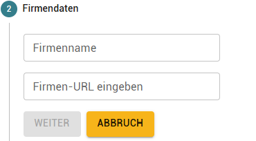 Eigener Unternehmensname und die URL von der Unternehmenswebseite eingeben.