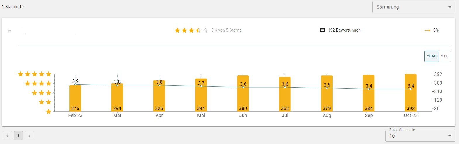 Haben Sie mehrere Standorte aktiv, dann können Sie je nach Bedarf die Anzeige des Bewertungsverlaufes minimieren oder ausklappen, um eine bessere Übersicht zu haben.