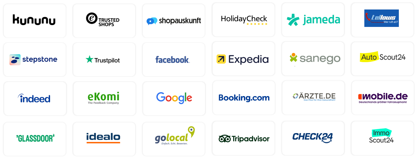 Folgende Bewertungsportale stehen aktuell zur Verfügung: